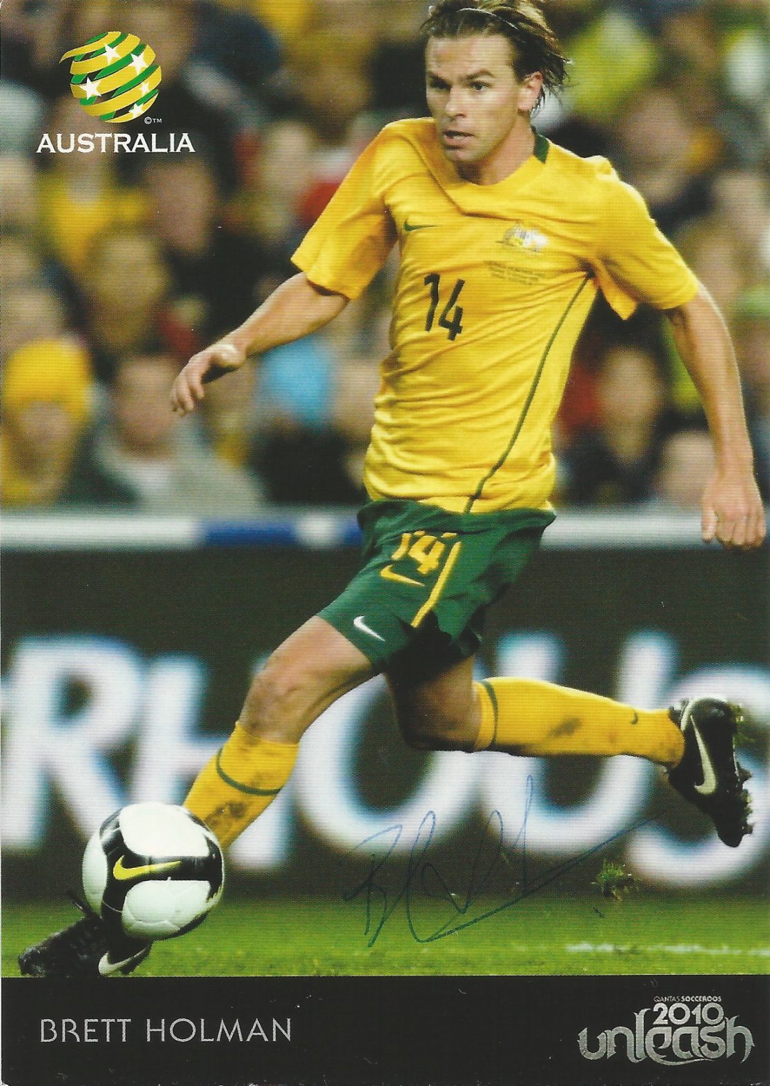 At the end of the 2005-06 season Brett Holman transferred to Eredvisie club N.E.C. He played two seasons for the club and the collection includes Magic Box Int, Plus (A Dutch Supermarket Chain) and official club cards from his two seasons playing for N.E.C. During his time at the club he made his debut for Australia against Bahrain in the Socceroos first Asian Cup qualifying match. The collection does not include any item from this match and while he did not make the 2006 World Cup squad there are programmes from his next two Asian Cup qualifying matches as well as three international friendlies. He was in the 2007 Asian Cup squad and the collection includes a programme and two of three match day tickets from his appearances at the Cup. He also appeared for the first time in the Select’s 20 man Socceroo squad set where the back of card correctly predicts his contribution to the 2010 World Cup qualification campaign.
